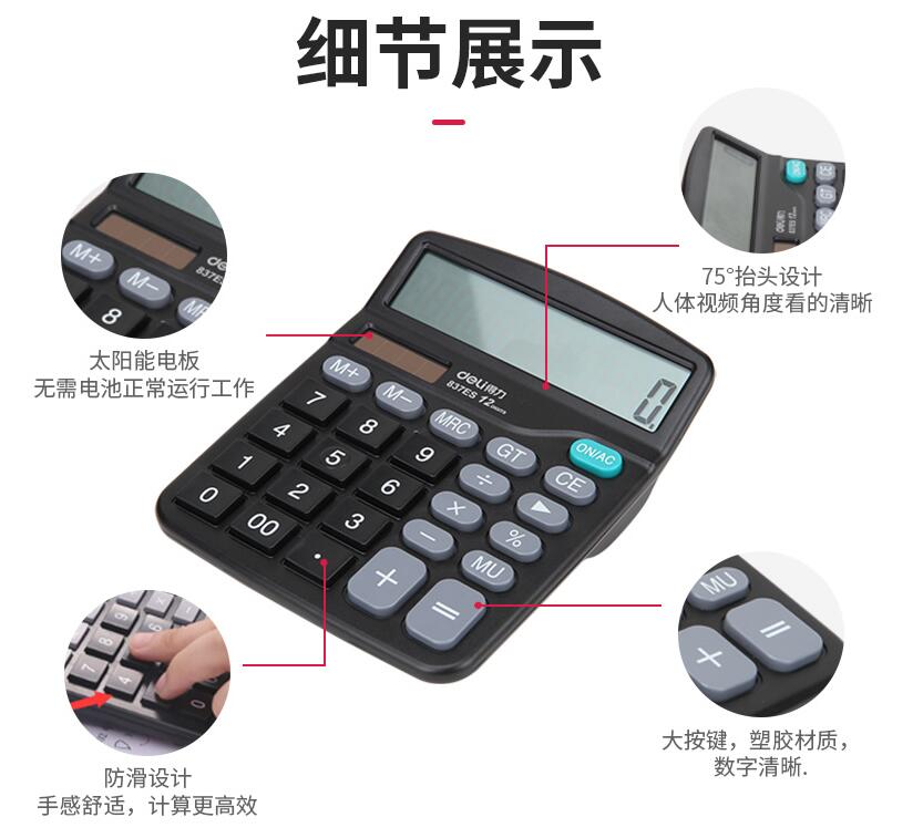 得力837計算器辦公用會計專用太陽能學生用帶語音大學財務小號便攜雙電源計算機器按鍵文具辦公用品大號