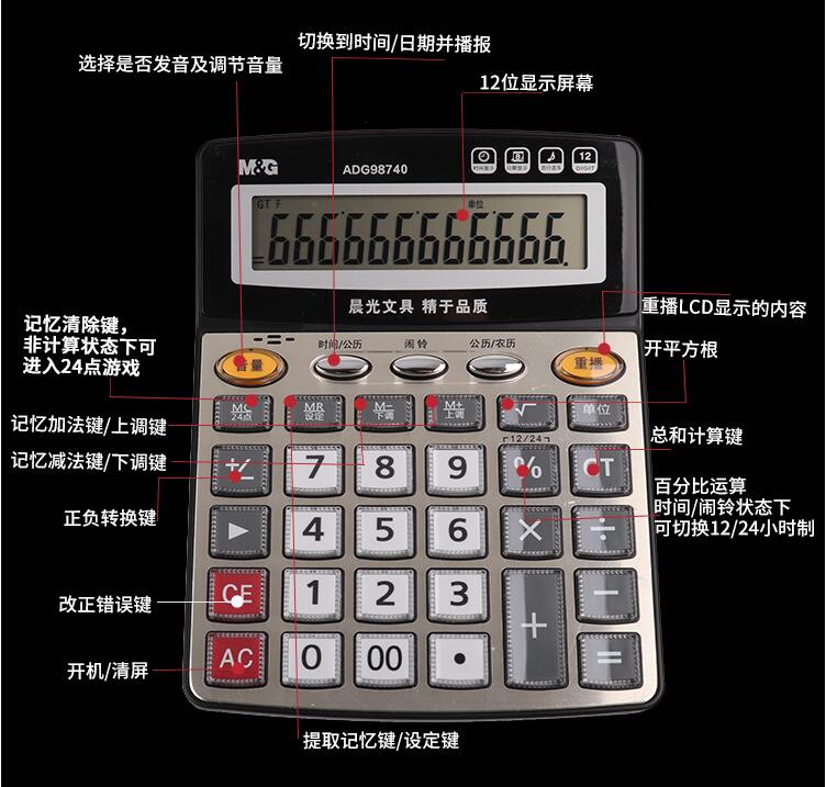 晨光計算器帶語音辦公用會計專用商務(wù)計算機辦公室大號大按鍵大屏幕女真人發(fā)音財務(wù)學生用小號便攜電子記算器