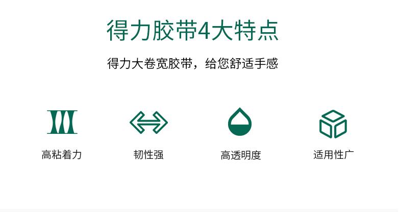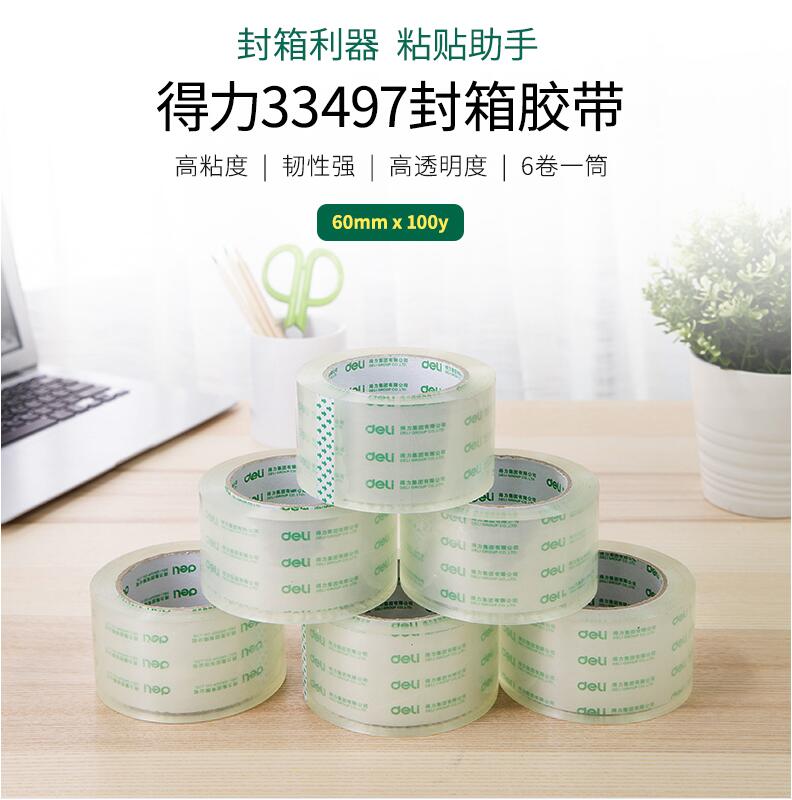 得力33497高透明膠帶 1筒6卷 封箱大號(hào)4.8/6cm寬膠帶大卷快遞可定制打包批發(fā)膠布封口固定高粘度不易斷6卷裝封箱膠帶